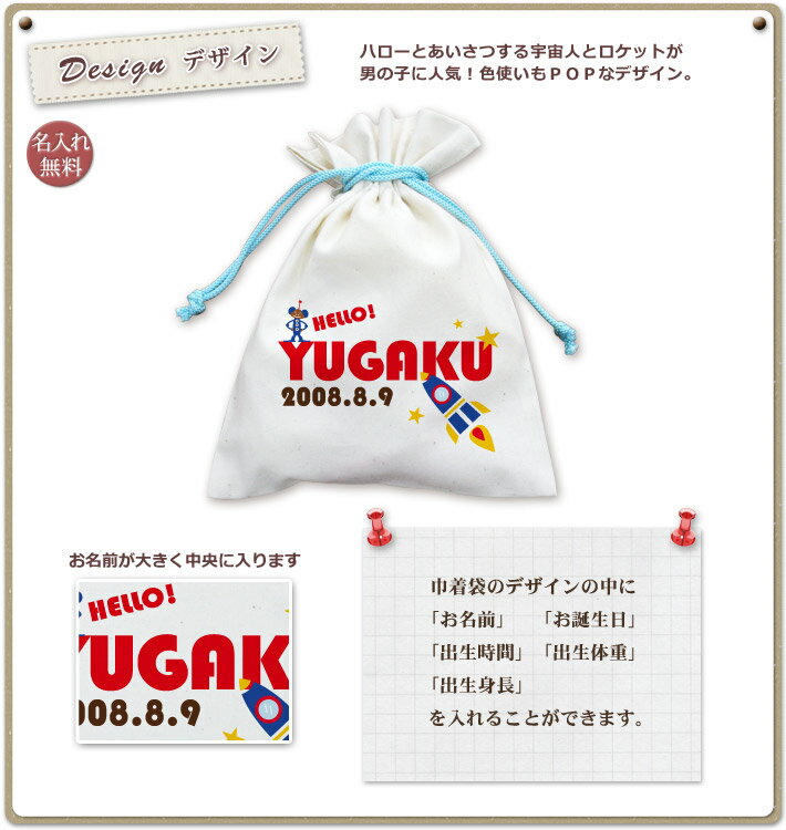巾着 入園 入学 通園 通学 誕生日プレゼント 名入れ 名入れ無料 名前入り 巾着袋 きんちゃく ポップデザイン ハロー(HELLO!) 男の子 子供 誕生日 プレゼント 幼稚園 保育園 コップ入れ コップ袋 百日祝い お七夜 【メール便対応】 【ココロコ】