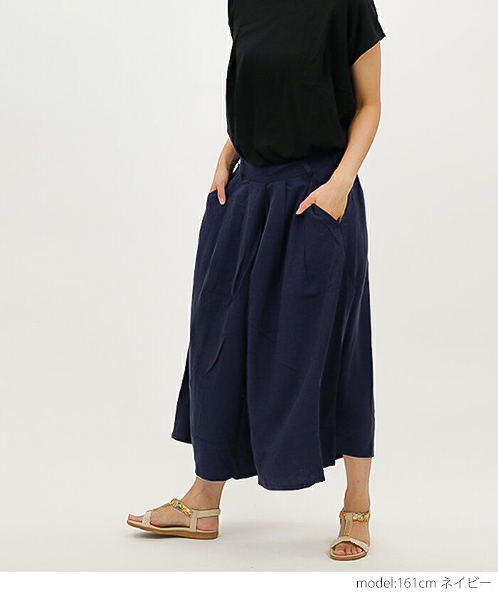 リネン混 ガウチョパンツ ワイドパンツ 麻混Infomation商品説明ボリュームのあるシルエットがかわいらしいガウチョパンツ。