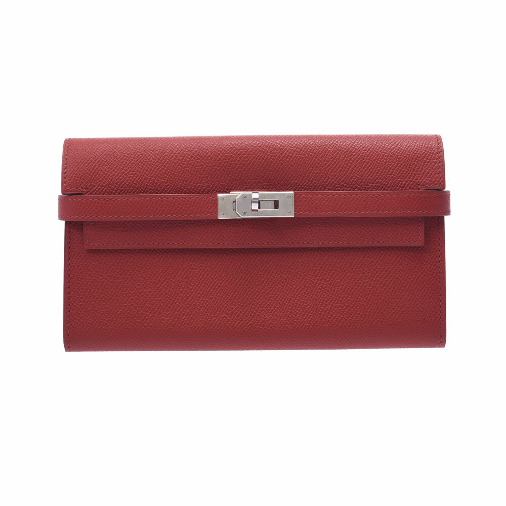 【SALE限定10%OFF★4日20時〜】HERMES エルメス ケリー ウォレット ルージュカザック シルバー金具 □K刻印(2007年頃) ユニセックス ヴォーエプソン 長財布 Aランク 中古 銀蔵