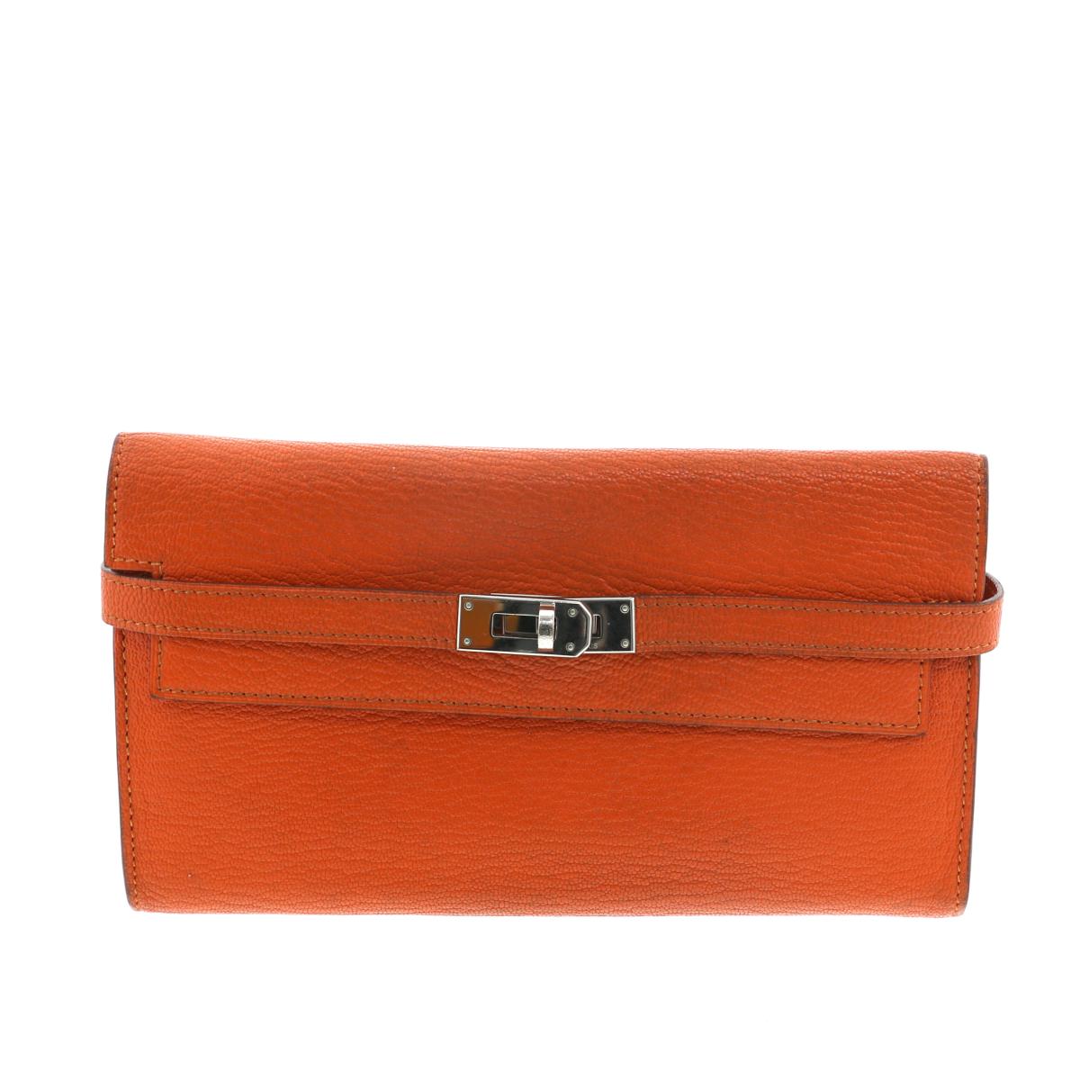 【中古】HERMES エルメス ケリー・ウォレット ロング 財布 長財布(小銭入有) Orange/オレンジ □R刻印 used:B