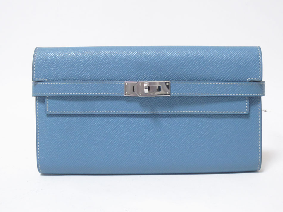 HERMES エルメス ケリーウォレット ケリーポルテヴァリュル ロング 長財布 レザー エプソン ブルージーン □Q刻印 美品 【中古】