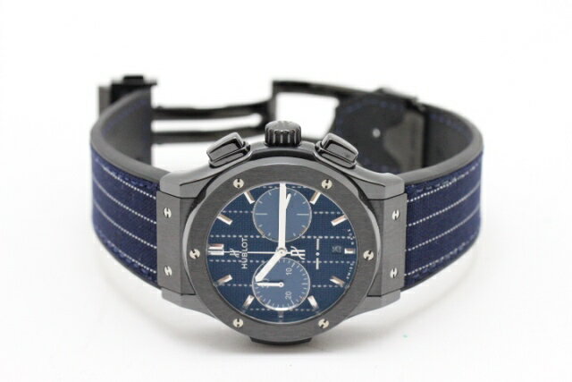HUBLOT ウブロ クラシックフュージョン イタリアインディペンデント ピンストライプ クロノグラフ セラミック ×ラバー ブルー文字盤 521.CM.2707.NR.ITI18 自動巻き 裏透け 100本限定 NS【472】 【中古】【大黒屋】