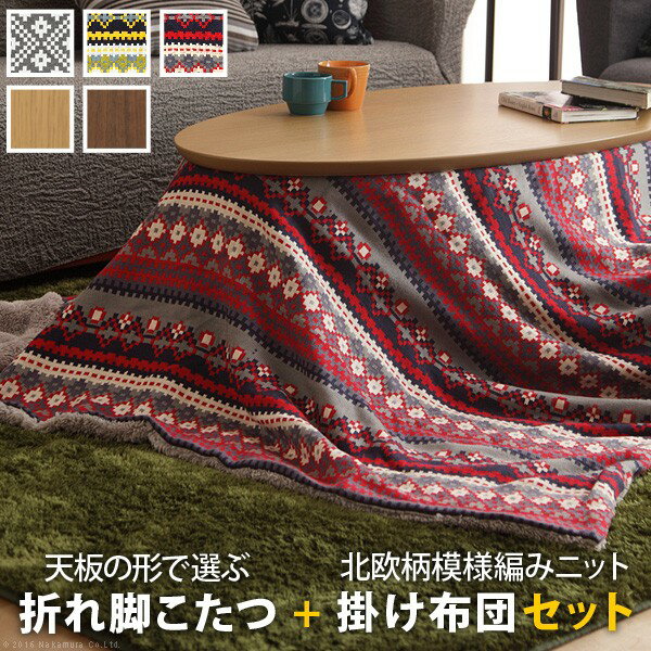 こたつ 折りたたみ 北欧 フラットヒーター デザイン折れ脚こたつ〔アロー〕北欧柄ふんわりニットこたつ布団 2点セット コタツ テーブル リビングテーブル ローテーブル 楕円 台形 ウォールナット オーク 木製 天然木 おしゃれ 暖房 テレワーク リモートワーク 在宅ワーク
